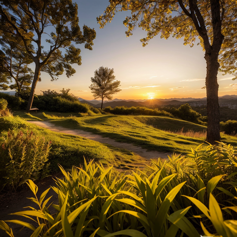 정상에서 바라보면 녹음이 우거진 산과 들, 그리고 멀리 바다가 펼쳐져 있었어요. 사진 찍기에 최적의 장소였습니다.